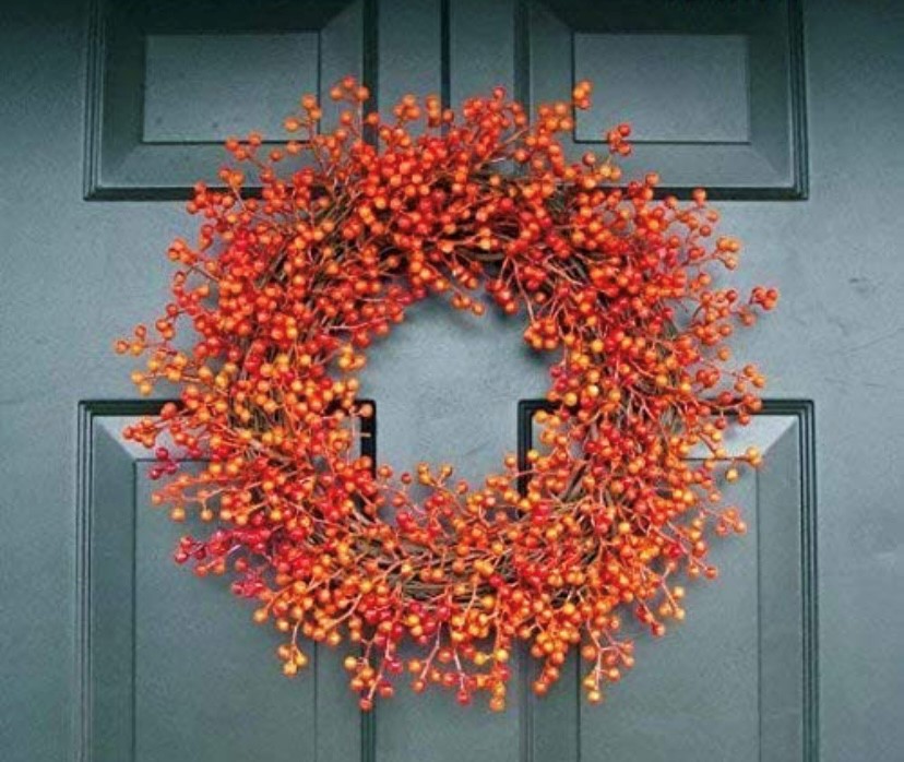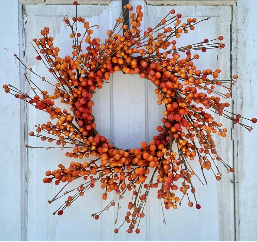 SPLURGE: Orange Weatherproof Fall Berry Wreath, - Great Welcoming Wreath for Autumn (Amazon)