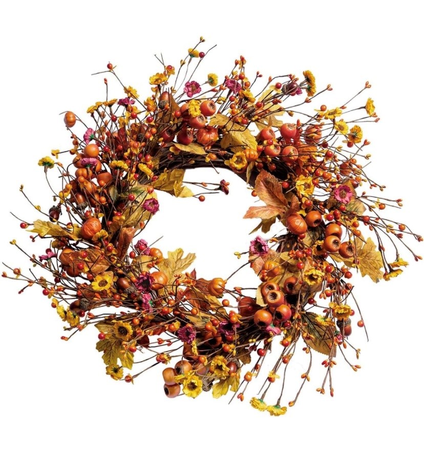 Soomeir Fall Wreaths with Orange Berryies and leaves - Harvest and Thanksgiving Decor (Amazon)