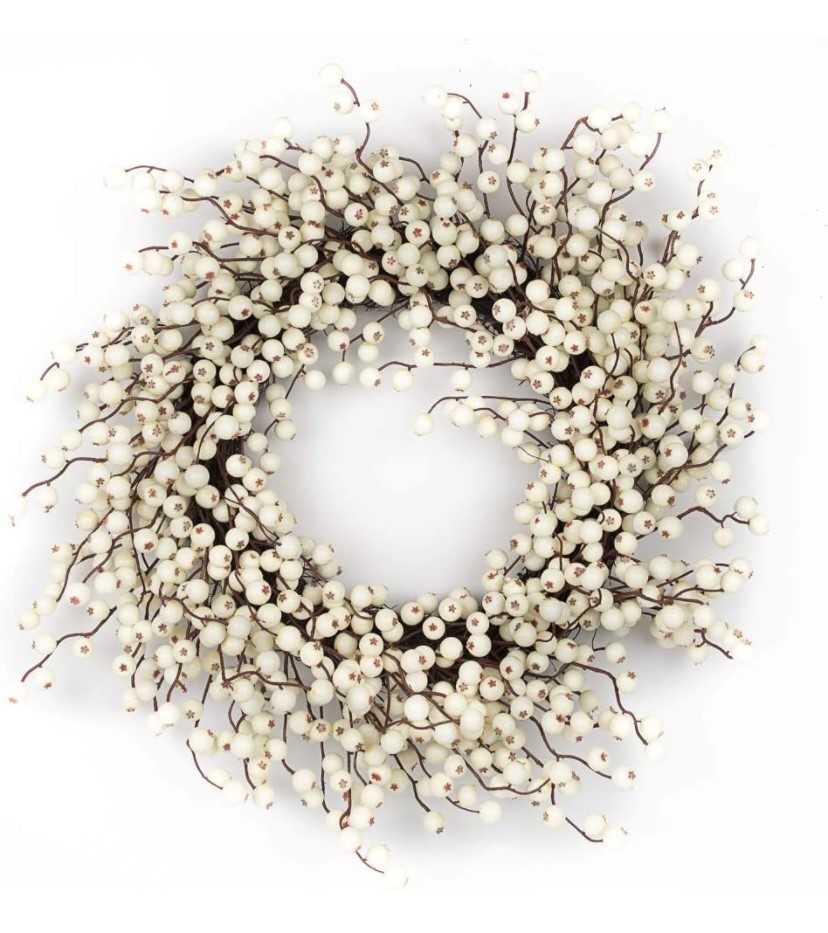 Water Resistant Berry Wreath on Grapevine in Shiny Cream Berry (Amazon)