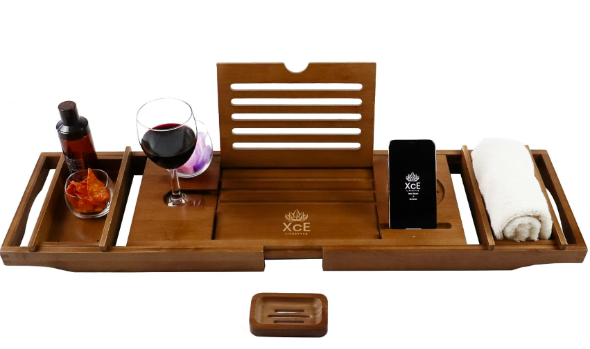 Who doesn't love a relaxing bath! This tub tray is made with beautiful wood and is laid out with space for a glass of wine, phone, book, and even snacks (Amazon). Pair it with candles, bath salts, or a bottle of wine.